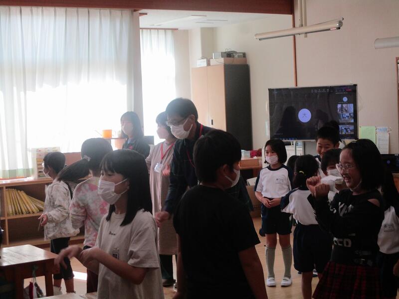 以心伝心ジェスチャーゲームとなんでもバスケットの活動では、子ども達と一緒に