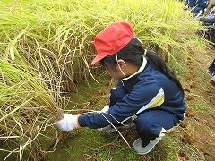 ニヒヒだんだんと鎌の使い方にも慣れてきて、ペアと協力して進めます。「5本、10本…、あと5本で15本だよ。」「やったー、15本終わったよ!さあ、交代!」