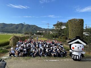 9月29日(木)に総合的な学習の時間の一環で5年生が稲刈りを行いました。春に植えた種もみがたわわに実り、たくさんの稲を収穫することができました。富7のボランティアの方々にも協力いただき、刈り取り方や稲の結び方などを学ぶことができました。5年生の稲刈りと聞いて、スペシャルゲストのとち介も応援に駆けつけてくれました。次は、脱穀。いよいよ5年生のお米ができあがります!