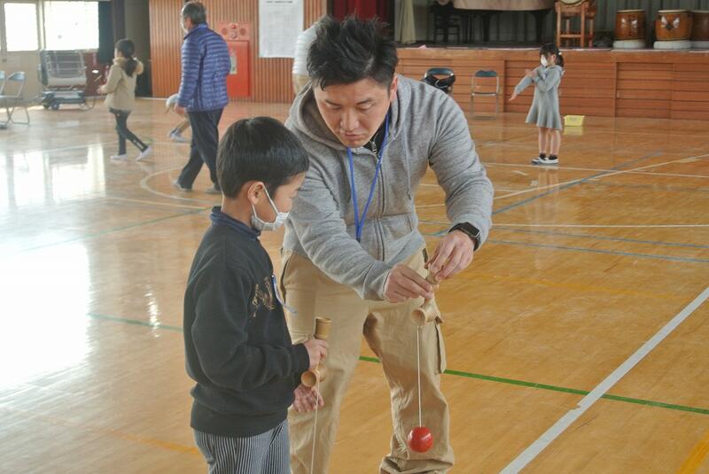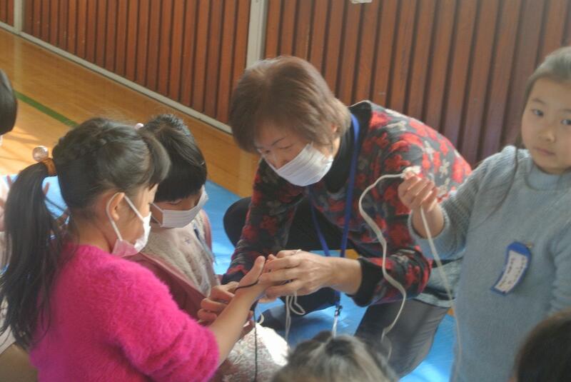 2月8日(金)に,1年生の祖父母の皆様と歴代PTA会長さん,そして手話の先生方から昔の遊びを教えていただきました。子どもたちは,あやとり・おはじきとビー玉・けん玉・こま・お手玉・竹とんぼ・空き缶ぽっくり・ぶんぶんごまの遊びの中から2つの遊びを選びました。そして,遊び方や遊びのこつを丁寧に教えていただきました。子どもたちは,教えていただくとすぐにその遊びに熱中し,上手に出来ると,とても喜んでいました。