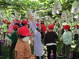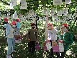 お話を聞いた後は、待ちに待ったぶどう狩り!2人1組で、力を合わせて収穫をすることができました。2房とらせていただき、帰り道は重たいぶどうを持ちながらも、みんな嬉しそうな表情をしていました。貴重な体験ができましたね。