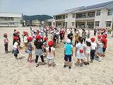 6月1日に大平地区スポーツ交流会が行われ,6年生全員が参加しました。大平地区の6年生が集合し,中学校区ごとにグループを作り4つのスポーツを楽しみました。種目は「50メートル走」「しっぽ取り」「ネットパスラリー」「ドッジボール」の4種目でそれに加えて,学校代表の15名が「台風の目」に参加しました。