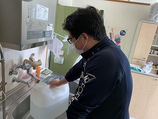 学校再開に向けて,校内の環境整備を進めています。水道やトイレも並ぶ時に3密を避けるために,写真のような工夫をしています。