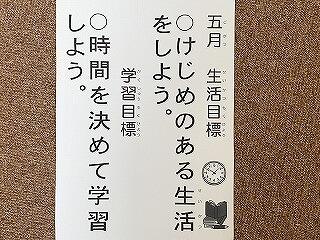 今日から5月のスタートです。いつもは,教室に掲示している生活と学習のめあてをお伝えします。今月は・・・