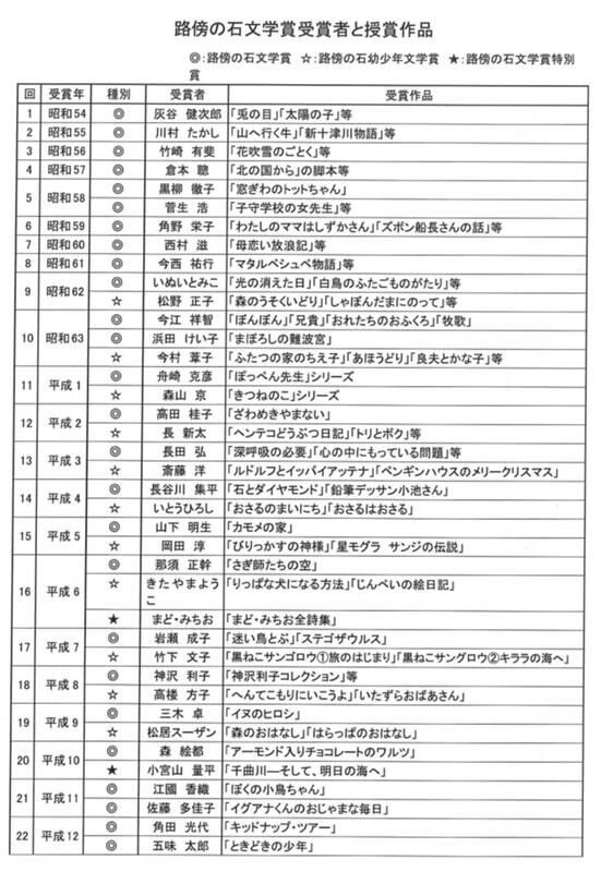 夏休みの課題、路傍の石作品コンクールの応募対象作品リストです。