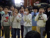花のアーチをくぐり、6年生が入場した後は、各学年の心のこもった出し物で大変心温まる楽しい時間となりました