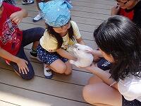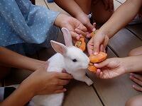 飼育係を中心に、ウサギとふれあったり、えさをあげたりしました。