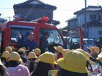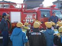 学校に消防車をお借りして社会科の学習をしました。3年生の「火事から人々をどう守るの」という単元で、災害現場での活動や消防車の仕組みを教えていただきました。消防車に身近に触れることができ、子ども達はあっという間に時間が過ぎたようでした。
