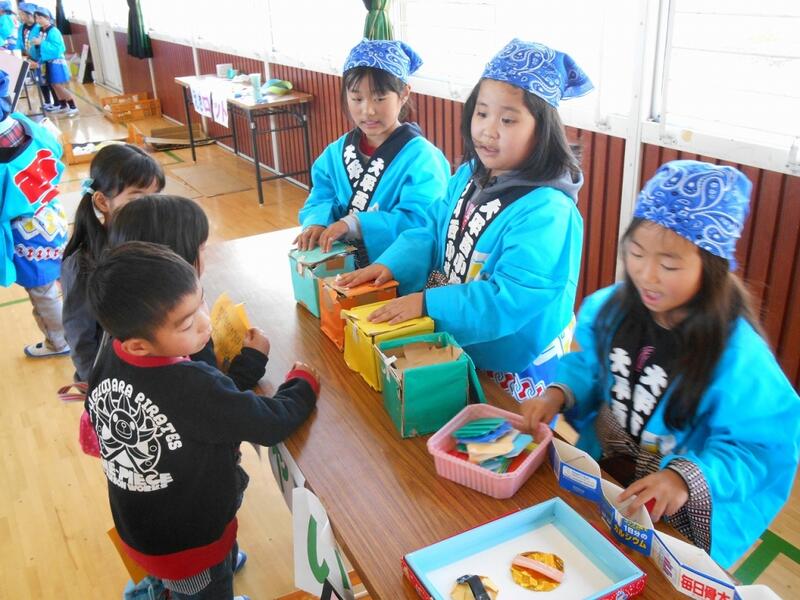 11月26日(火)、2年生による生活科の「秋祭り」が行われました。保護者の方や1年生、先生方に来ていただいて、大変盛り上がりました。ありがとうございました。2年生は、約1ヶ月前から群読の練習や、お店の準備をしてきました。本番では緊張している様子も見られましたが、楽しみながら協力してでき、練習や準備した成果が出せたことと思います。