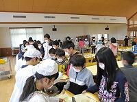 食への関心を高めてもらおうとさまざまな活動を実施しました。西小には「ランチルーム」があります。広々としたランチルームを活用し、学年がまとまって会食しました。