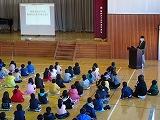 校長先生のお話では、各学年の行事を振り返りながら頑張りをほめていただきました。また、たくさんの行事や学校生活ができたことは、たくさんの人の「おかげさま」ということもお話がありました。児童主任の先生からは、大切な命を守るための過ごし方についての話がありました。下学年の部では、2年生による作文発表もありました。