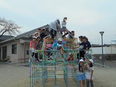 4年生最後の図工の授業では「いい場所見つけて」に取り組みました。スズランテープを使ってジャングルジムと雲梯を装飾しました。子どもたちはとてもいきいきとした表情で取り組んでいました。