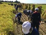 10月4日に総合的な学習の時間に稲刈り体験を行いました。5月に田植えをした稲を地域の方が大切に管理してくださり,今日の日を迎えることができました。稲刈りかまを使って,一つ一つ丁寧に刈り取り束ねました。刈り取り方や束ね方、稲の干し方を丁寧に地域の方が教えてくださり,とてもよい体験となりました。地域の皆様、本当にありがとうございました。来週は脱穀体験をさせていただく予定です。