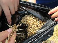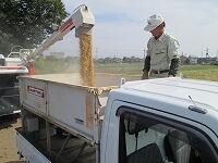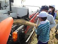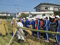 先日刈り取った稲も、天日に干したことで程よく乾燥させることができました。脱穀はコンバインを使って一束ずつ丁寧に機械に入れました。手や服、髪の毛などが機械に巻き込まれないように気を付けながらの作業でした。脱穀された籾を見ると「お~っ!」とか「米だぁ!」など、喜びや驚きの声が上がりました。田んぼに残された落ち穂拾いを丹念に行いながら、お米を作る人の苦労や気持ちを考えることもできました。