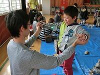 11月6日、1年生の親子学習が実施されました。歴代PTA会長さんを講師にお迎えし、ぶんぶんごまと空き缶ぽっくりを親子で作りました。作り終わった後は、完成したぶんぶんごまを回したり、空き缶ぽっくりにのって歩いてみたりしました。親子で仲良く作っている姿がとても微笑ましかったです。その後、ランチルームで給食試食会を行いました。保護者の方々に子どもたちの当番の様子を見ていただき、おいしい給食を一緒に食べました。