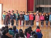 12月8日、業間の時間に、1年生の発表集会が行われました。1年生は、群読「路傍の石より~いのち」を発表しました。全校児童の前で少し緊張した様子でしたが、大きな声で立派な発表ができました。大きな拍手をもらって、1年生は、大満足でした。