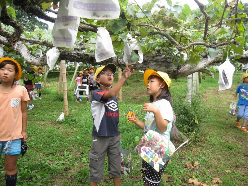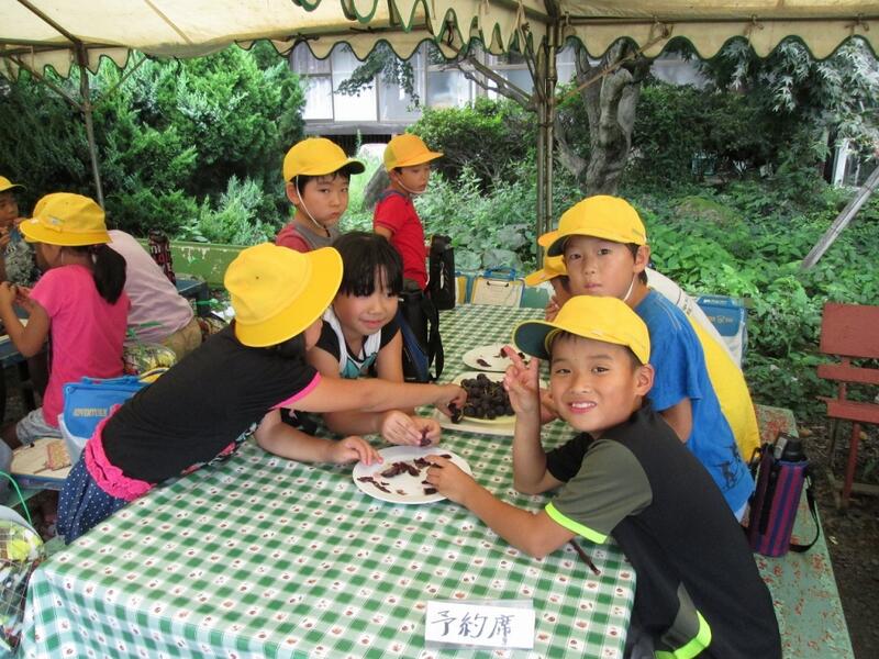 9月4日(金)に、総合的な学習の時間の一環として、盤峰園にぶどう狩りに行きました。盤峰園のスタッフの皆様、ありがとうございました。ぶどう狩りをすることが初めての子が多く、おいしそうな巨峰を楽しそうに選んでいました。また、ぶどうの木をじっくり観察したり、盤峰園のスタッフの方からぶどうについて説明をお聞きしたりすることができました。1本の木から500~1000房のぶどうができることや、ふくろかけなどの作業が1ヶ月近くかかる大変な作業であることなど、初めて知ることが多く、子どもたちにとって貴重な体験となりました。