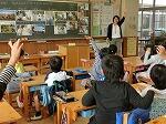 10月30日に,給食センターの栄養士の先生が来校し,1年生に, 食育の授業をしてくださいました。テーマは,「給食ができるまで」。写真や給食センターで実際に使っている器具を用いて,一年生にもとてもわかりやすく教えてくださいました。