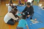 ぶんぶんごまづくりです! 「ぼくも やってみるよ!」 「すごーい!回ってる!!」