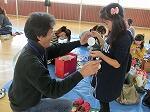 11月16日に,1年生の親子学習と給食試食会を行いました。親子学習では,歴代PTA会長さんを講師にお招きし,「空き缶ぽっくり」と「ぶんぶんごま」を作りました。親子で協力して,素敵な手作りおもちゃができあがり,子どもたちもとても嬉しそうでした。
