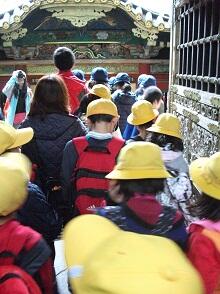 日光東照宮で子ども達は、しおりにメモを一生懸命とっていました。