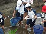 普段、何気なく見ていた水路の中をのぞいてみると、そこは生き物たちのすみか。網の中で動くザリガニやメダカを見ると、うれしさのあまり自然と声が出ていました。