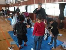 まず、仲間集めゲームをしました。教頭先生の言った言葉の文字数と同じ人数でグループを作る遊びです。