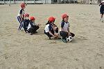 体育では,キックベースに取り組んでいます。寒さ厳しい日でしたが,子どもたちは大盛り上がり。仲間と協力して取り組んでいます。チームは,1組と2組混合チームです。点数が入ると