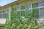職員室前の様子です。4年生が観察しているゴーヤがぐんぐん育ち,あっという間にグリーンカーテンができあがっています。よく見ると,もう,実がなっています!!