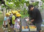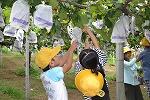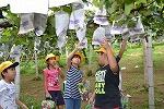2学期が始まり、9月4日(月)に3年生は小学校近くのぶどう園に校外学習に行ってきました。ぶどう畑に入ると、白い袋のかかったぶどうがたくさん実っていました。ぶどう狩りを通して、ぶどう作りやぶどう園の様子を見学しました。