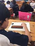 一玉・五玉を、親指や人差し指でパチパチはじきました。玉を入れる順番もあり、一つ一つ丁寧に取り組みました。玉を目で見ることで、確かに正しく計算できていることがわかりました