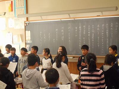 4年生は,6年生を送る会で歌う歌の替え歌づくりをしています。曲は「ありがとうの花」です。みんなで考えた歌詞をつなぎました。先週は,その歌を下級生に教えに行きました。