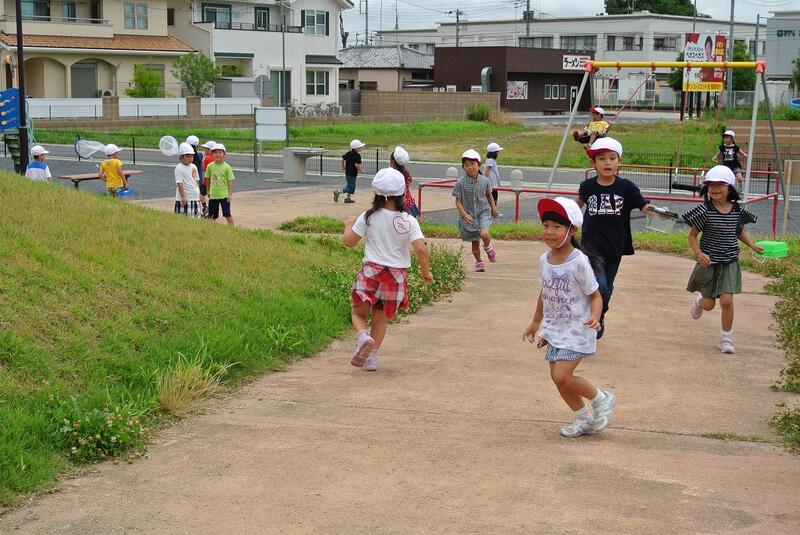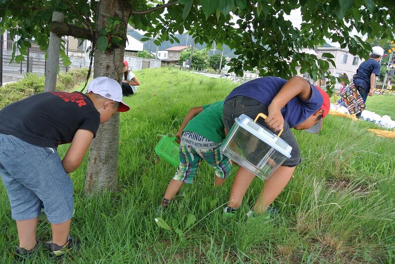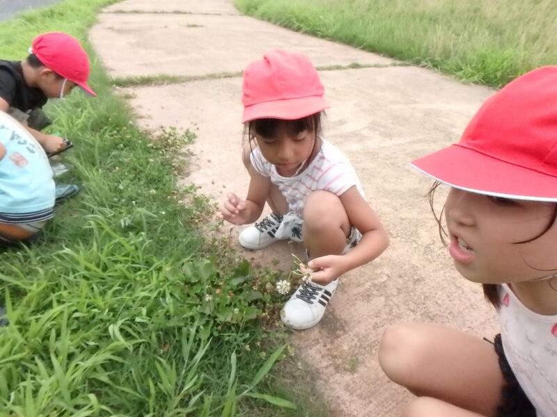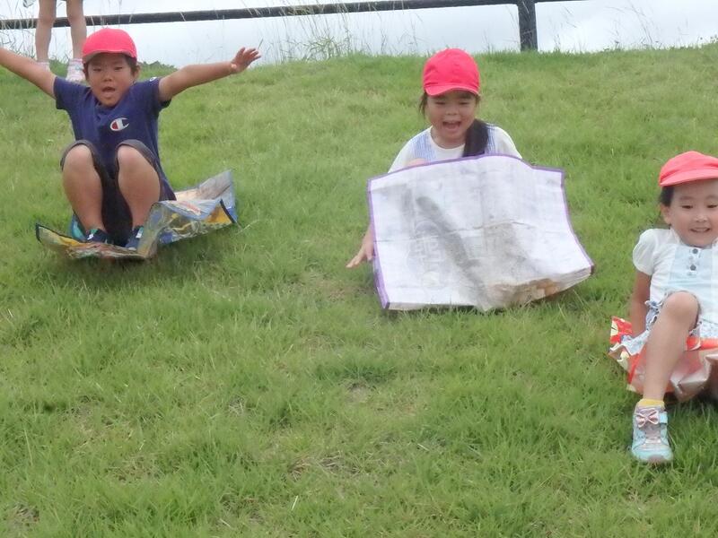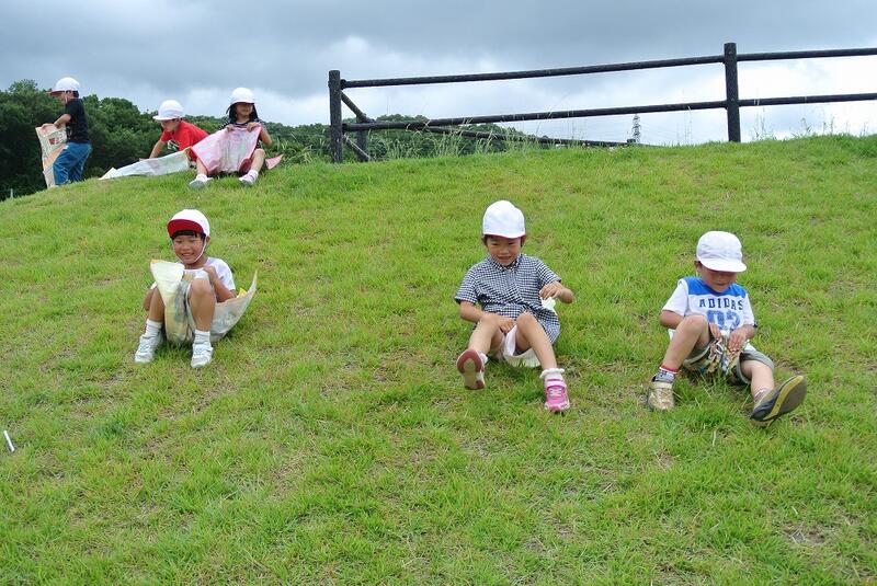 芝すべりや,虫さがし,草花つみなどをみんなで楽しみました。子どもたちのアイディアはとてもおもしろいです。次から次へと遊びを考えていきます。