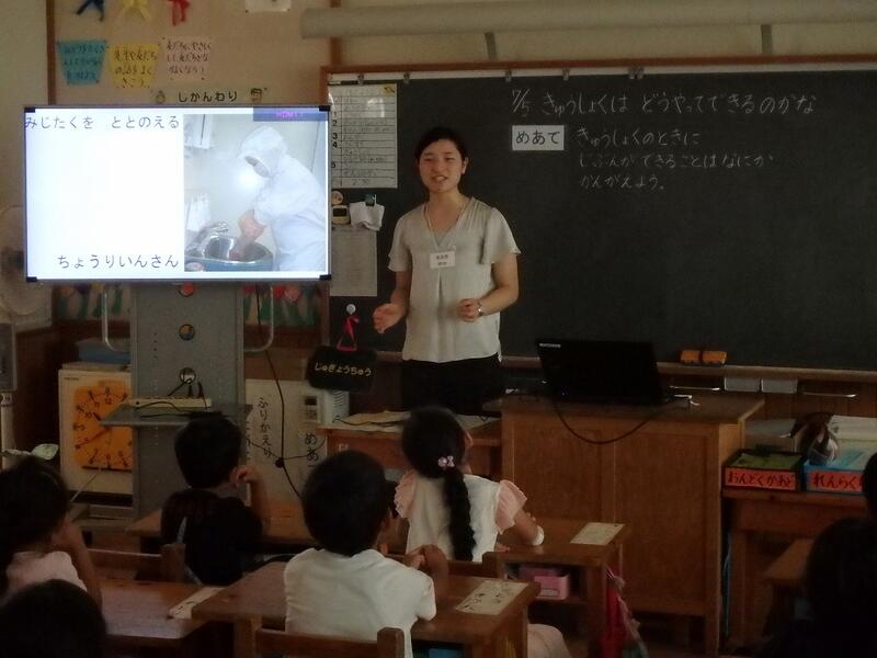 7月5日に,大平学校給食センターの青木先生が来校し,1年生に食育の授業をしてくださいました。「給食はどうやってできるの?」という内容で,給食センター内の様子や,調理員さんが給食を作ってくださっている様子を写真や動画で教えてくださいました。調理員さん達が,自分達のために,一生懸命に作ってくださっていることを子どもたちは,とてもよく理解していました。今日の授業を受けて,「ありがとうの気持ちを持って食べよう。」「苦手な食べ物も1口は食べてみよう。」などと,子ども達は話していました。