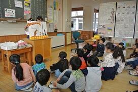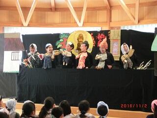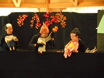 ひまわりクラブさんによる「わらしべ長者」の表情劇には、音楽室に入りきらないほどの児童が見に来て、楽しく鑑賞する様子が見られました。