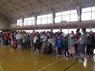 ○×クイズでは、たくさんの児童が集まり、クイズに正解するたびに歓声があがりました。