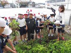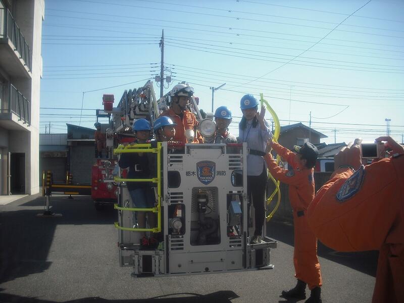 消防士のみなさんに説明を聞いたり、消防車を見せてもらったり、