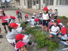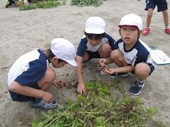2年生の生活科で、教材園で育てていた落花生を、収穫しました。