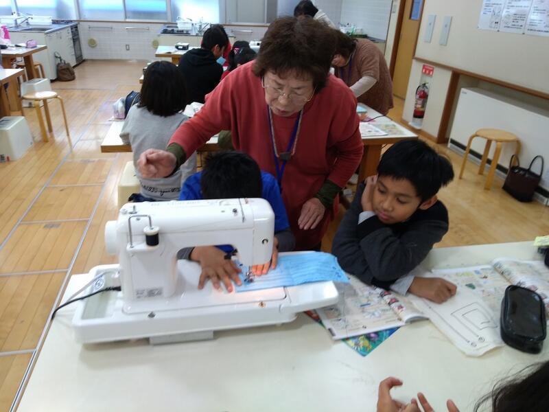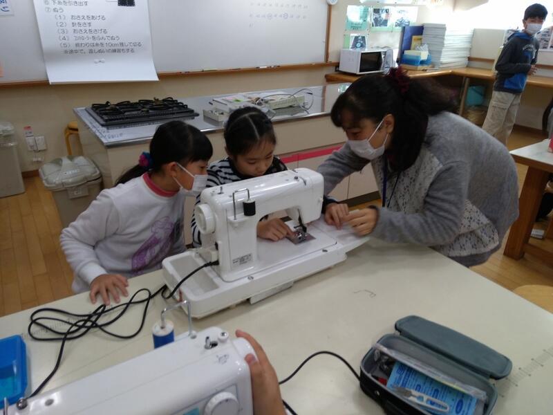 2学期にミシンボランティアの方といっしょに、ミシンの基礎は学習していたので、スムーズに始めることができました。ミシンボランティアの皆様、ありがとうございました。