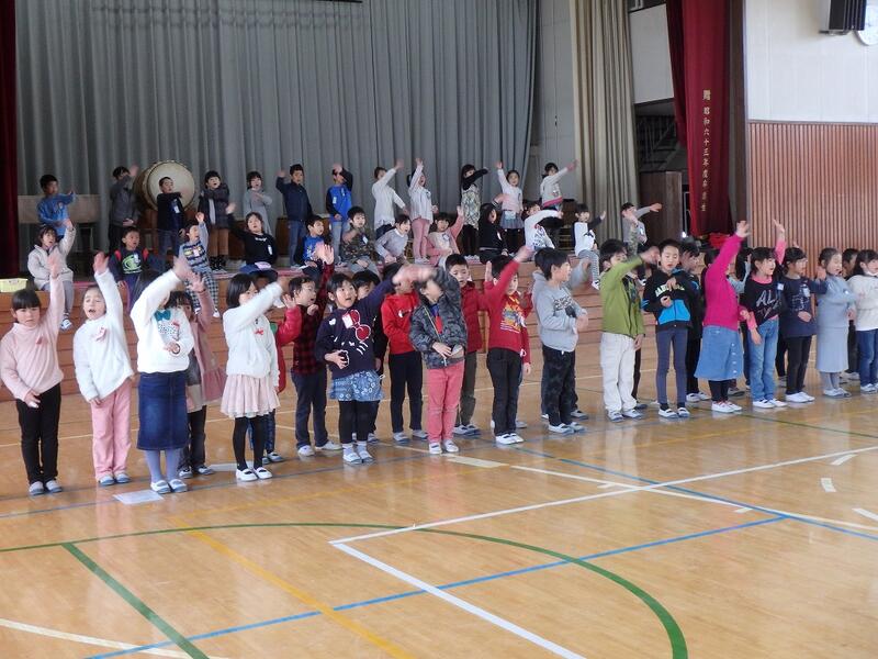 「きりん」「三辺返し」「八木節」「校歌」の演奏を6年生に教えてもらっています。