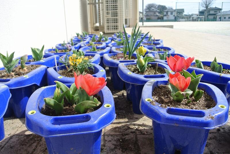 入学当初から,様々な場面でお世話になった6年生へ感謝の気持ちを込めて,1年生みんなで感謝の花を描きました。交流ラウンジに飾ってあります。