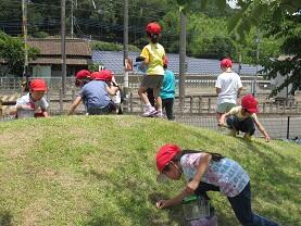 かわいいバッタやコオロギをみつけて、虫かごの中に入れて、にこにこ笑顔でした。なかなか捕まえることができないお友だちのために、捕まえてあげる姿をたくさん見かけました。