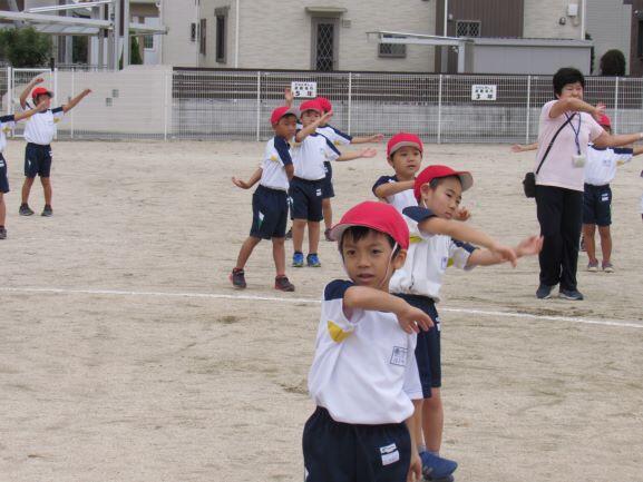 小学校に入学して初めての運動会に向けて、毎日練習を頑張っています。ダンスの練習はノリノリで、みんなニコニコ笑顔がかわいいです