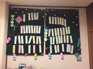 先日の七夕にちなんで4年生も短冊に願い事を書きました。一人一人の胸の内を垣間見ることができました。みんなの願いがかないますように・・・。