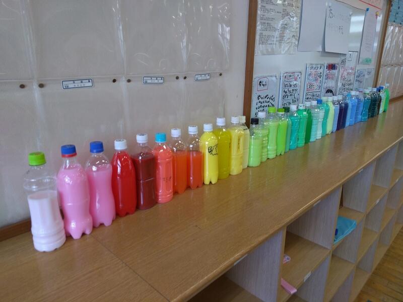 この学習では、色水(いろみず)を使って、自分の好きな色を作っていくものです。