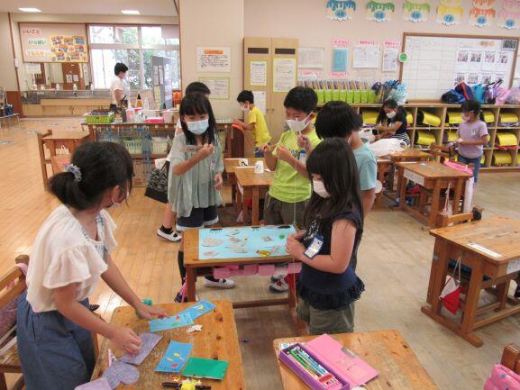 やり方を優しく教えてくれたり、一緒に遊んでくれたり…2年生はとっても優しくて、「もっと遊びたかった」と、1年生はみんな大喜びでした。最後にプレゼントもいただいて、ニコニコ笑顔の時間を過ごしました。