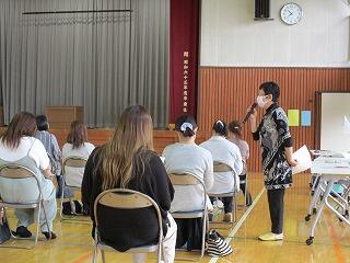 また、授業参観の合間には、2年PTA学年部や研修部の協力のもと、栃木市生涯学習課主催となる家庭教育学級・ハッピー子育て講座を実施しました。大平地域で家庭教育オピニオンリーダーとして活躍されている「ほほえみの会」の皆さんを講師にお招きし、講話「子どもを伸ばす魔法のことば」をいただきました。子育ての先輩となる会の皆さんのお話に、自分自身の日頃の子どもとのかかわりを見つめ直す機会となりました。講師の方々、参加された保護者のみなさん、ありがとうございました。