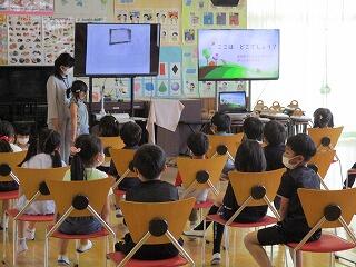 今年度初めてとなる授業参観を2年生が行いました。1組と2組の参観時間を分けて、会場をランチルームとして実施しました。生活科で予定している「まちたんけん」に向け、ふるさとクイズをしたり、インタビューをしたり、楽しい授業参観となりました。久しぶりに保護者の皆様に学校のようすを見てもらい、子どもたちもみんな笑顔で学習していました。