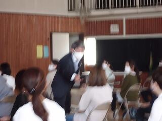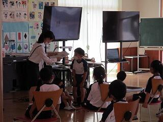 3密対策として、1年2組が2時間目に、1年1組が4時間目に、ランチルームを会場として行いました。多くの保護者の方々に参観していただき、手を挙げたり、発表したり、お話を聞いたり、この2ヶ月で成長した姿を見守っていただきました。子どもたち一人一人の緊張しながらも嬉しそうな表情が、とても印象的でした。