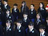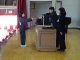 その後、各クラス代表の児童に修了証が授与されました。代表児童はもちろん、クラスごとに起立した姿は立派でした。みんな免許皆伝を受けることができました。また、1・3年生の代表作文でも、1年間の思い出を振り返りながら、新学年への目標などが述べられました。